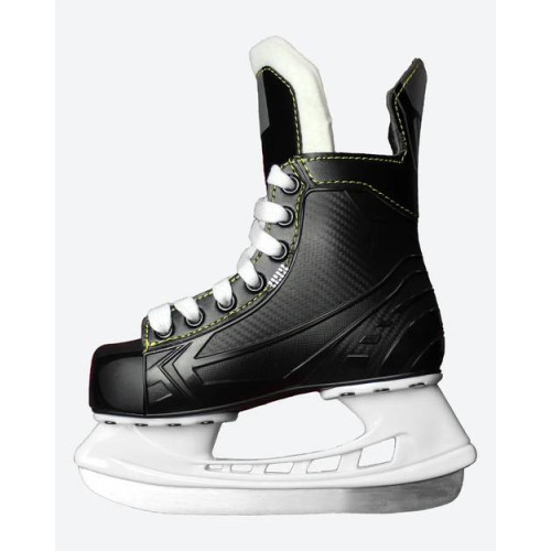 Хоккейные коньки FISCHER FXE YTH являются моделью любительского уровня и подойдут начинающим хоккеистам. Литая конструкция ботинка обеспечивает прочность, что защищает коньки от повреждений при падениях или случайных попаданиях клюшек/шайб по коньку. Жесткий ботинок обеспечивает надежное положение ноги и защищает не только от внешних, но и от внутренних повреждений стопы при игре. Язык в данной модели помогает предотвратить передавливание ноги тугой шнуровкой, благодаря чему коньки можно будет надежно и удобно зафиксировать на ноге без потери подвижности. Стандартные лезвия из нержавеющей стали обеспечивают хорошее сцепление на льду и вместе со стаканом придают модели хорошую управляемость.